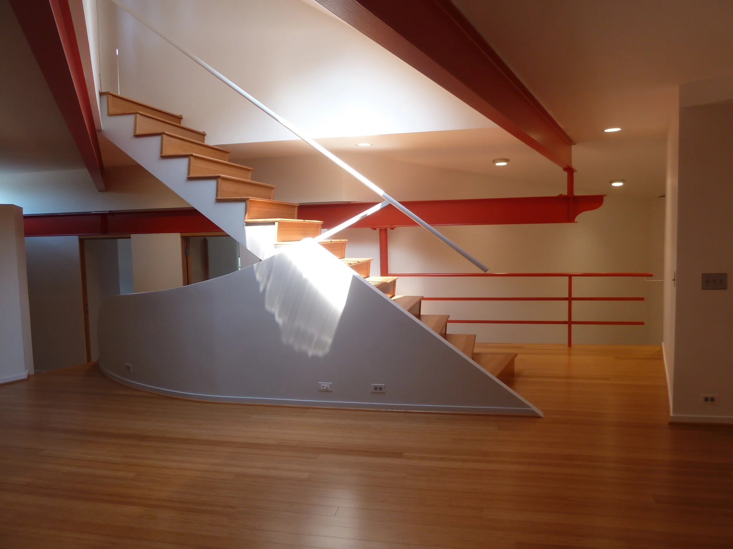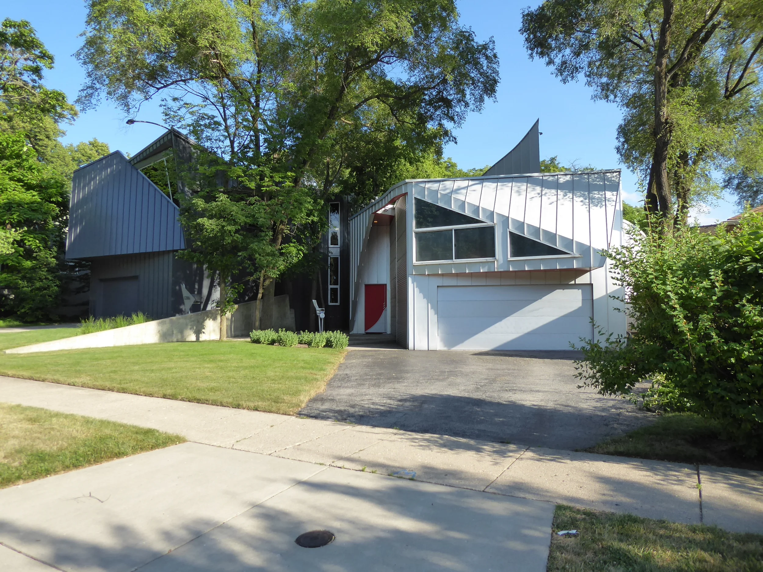 A modern, two-story, aluminum clad, single-family residence that has been the subject of numerous newspaper articles and television programs, such as HGTV’s “Extreme Homes”. The 2800 sq.ft. interior is filled with architectural details, multiple built-in storage units, architect-designed rift oak kitchen cabinets and custom furniture. Two-story volumes, curved walls, exposed steel structure, and an open plan give the home a loft-like quality. The natural light-filled structure incorporates passive solar techniques, maximum insulation, and many green materials. The additional 975 sq.ft. lower level office/studio is perfect for live / work users.